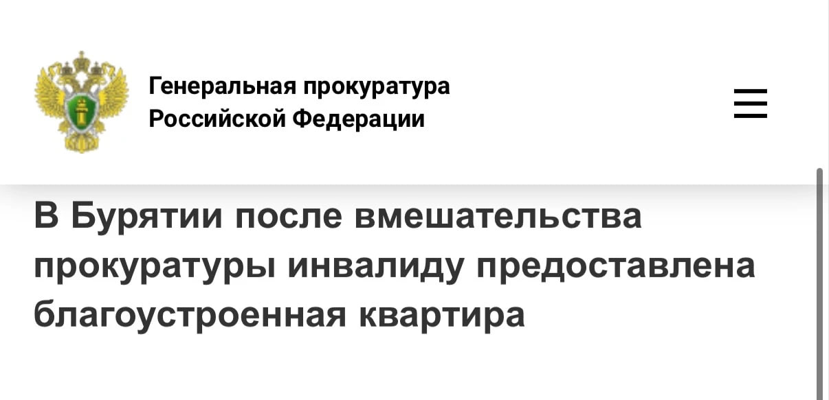 Благодаря вмешательству надзорного ведомства жилищные права инвалида восстановлены, ему предоставлена благоустроенная квартира в поселке Селенгинск площадью 54 кв. м.