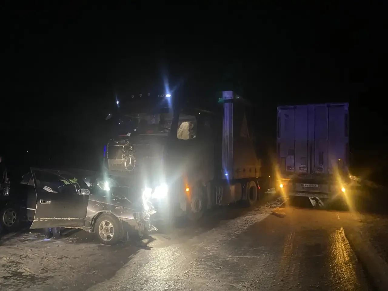 В Иволгинском районе около 22:00, в 5 км от с. Ошурково, 35летняя водитель автомобиля «Тойота Королла» не справилась с рулевым управлением, выехала на полосу встречного движения и совершила лобовое столкновение с грузовиком «Мерседес». После этого попутный грузовик «MAН» столкнулся с «Мерседесом». В результате травмы получили водитель и 19летний пассажир легкового автомобиля.