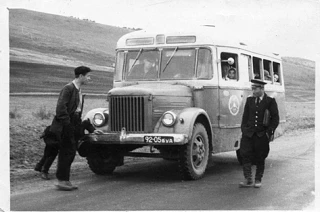 1970 год - инспекторы дорнадзора Эрдынеев Б.Э. и Курбатов Н.В. осматривают автобус.