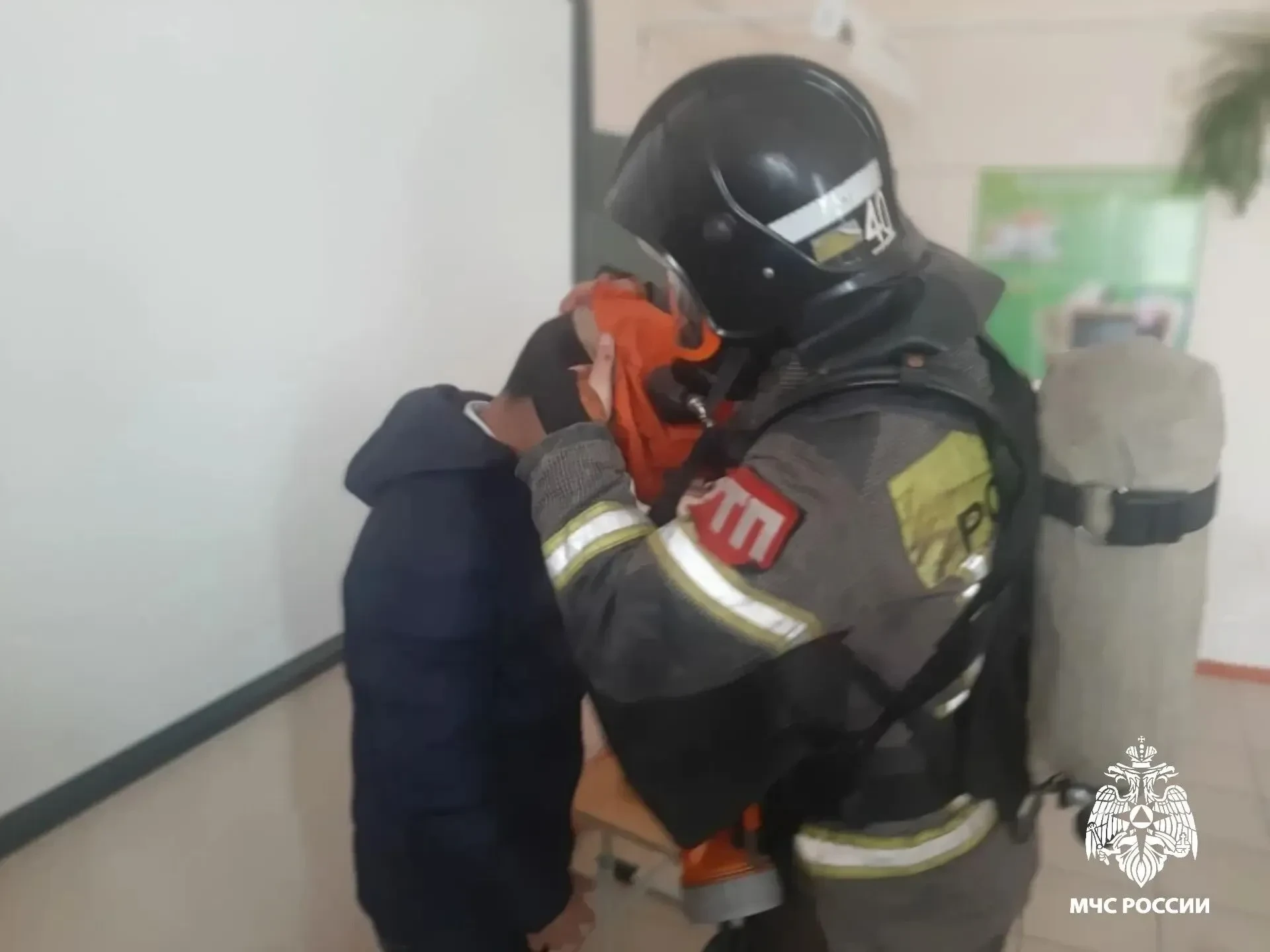 По легенде, возгорание случилось в библиотеке. Учителя оперативно эвакуировали детей, два человека были спасены пожарными и спасателями, одного из которых спустили с помощью трёхколенной лестницы из окна второго этажа.