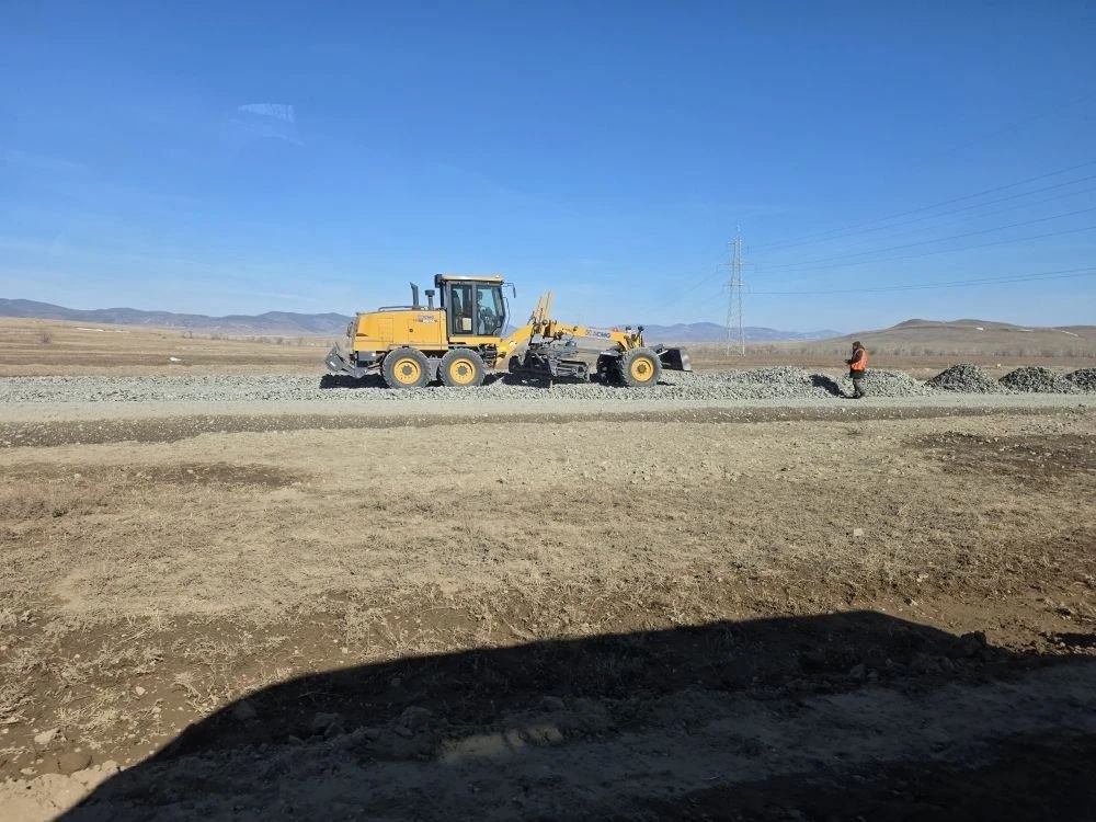 По дороге заехали на участок реконструкции автодороги Гусиноозёрск — Петропавловка — Закаменск — граница с Монголией в Селенгинском районе. Контракт заключён сразу на 30 километров (30-й - 60-й километр автодороги), асфальтирование начнется уже в этом году. Работы ведутся, объект в графике.