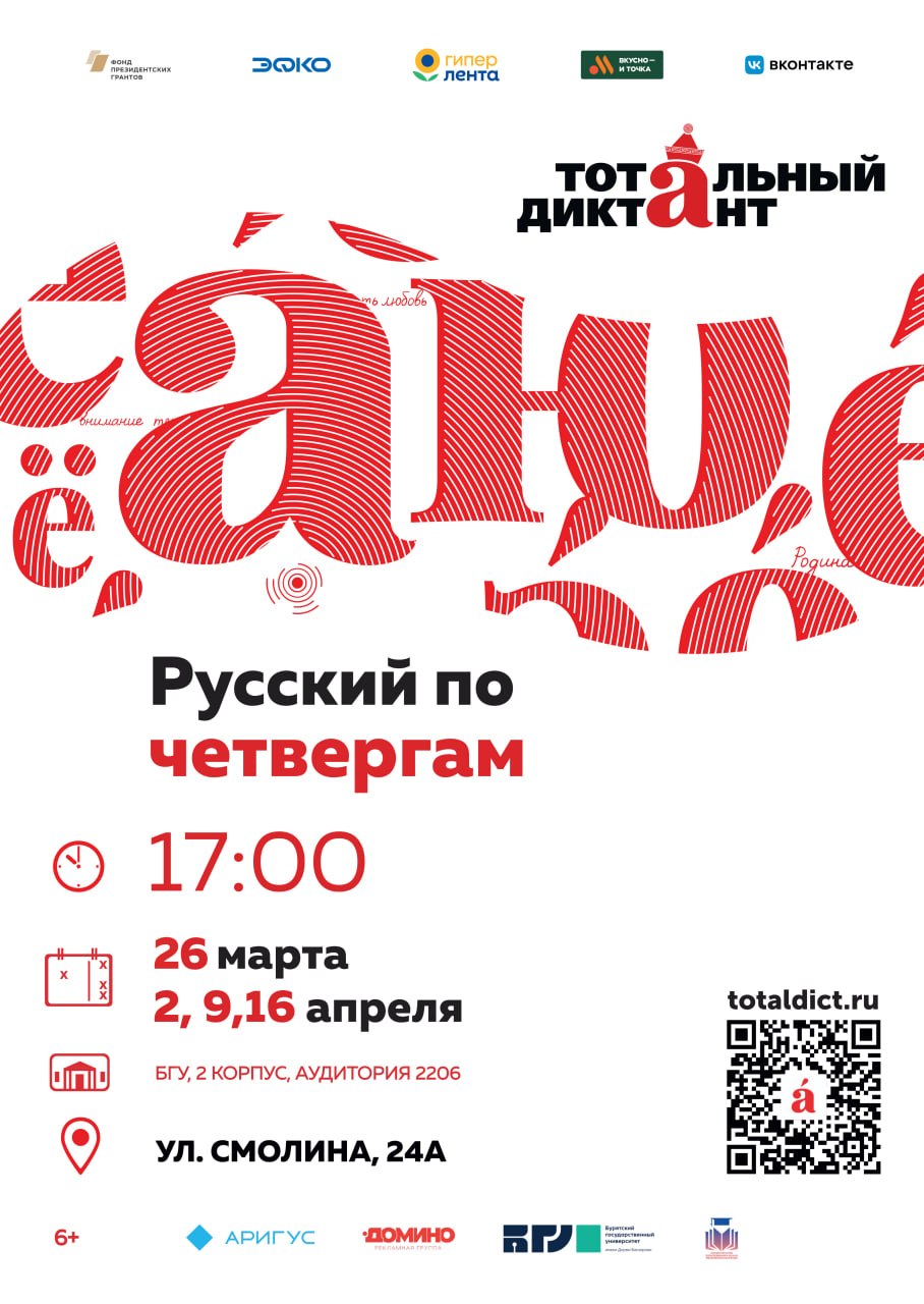 Друзья, кто планирует участвовать в «Тотальном диктанте», ловите шанс подготовиться основательно. В Улан-Удэ начинается цикл очных занятий «Русский язык по четвергам».