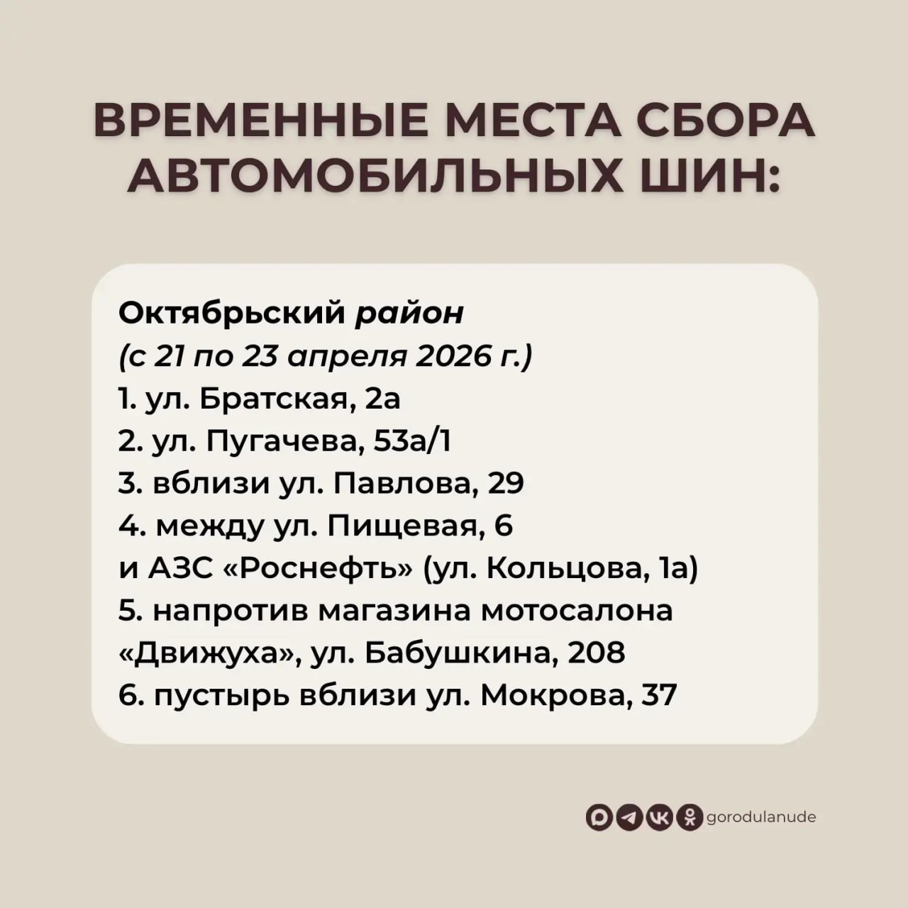 Весенний месячник чистоты – отличный повод избавиться от старых шин. Сдайте ненужную «резину» на переработку. Из нее сделают безопасное покрытие для новых площадок.