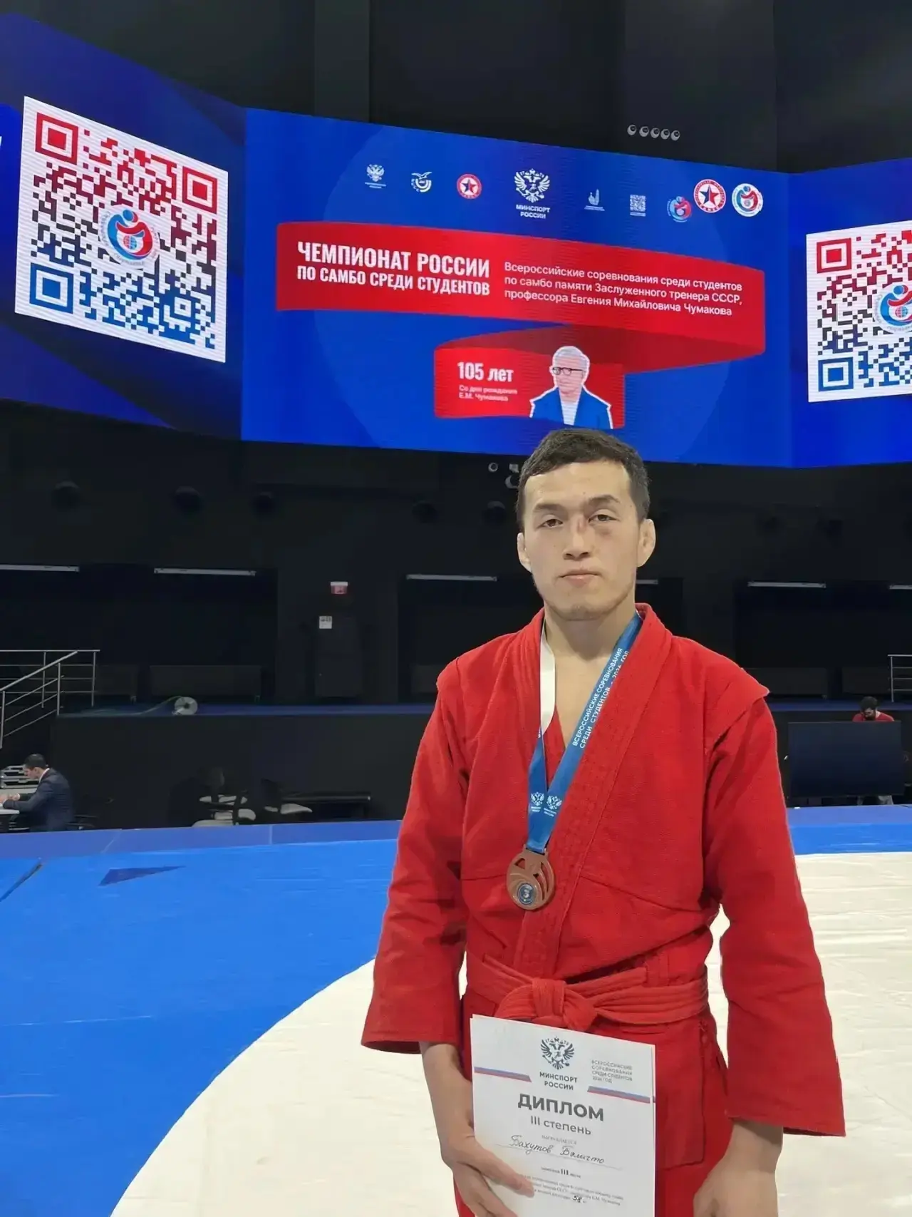 Студент БГСХА Бэлигто Бахутов выступал в весовой категории до 58 кг и провел несколько напряженных поединков. Выносливость, тактическая грамотность и уверенная техника позволили ему подняться на пьедестал.