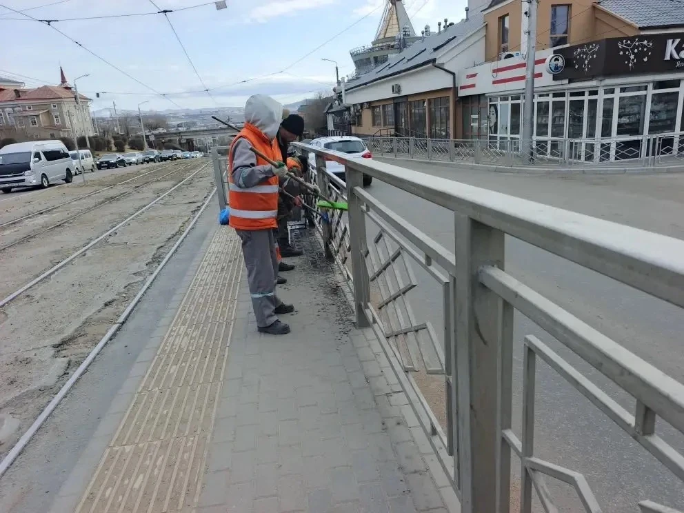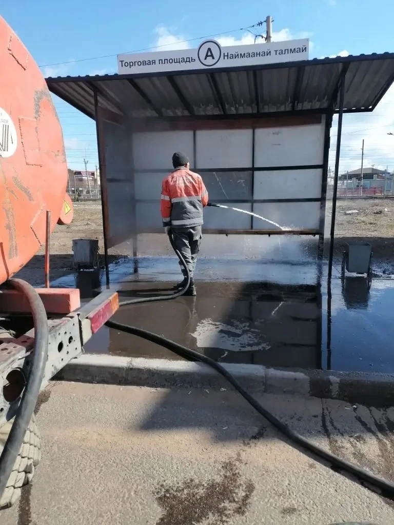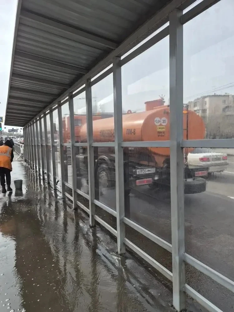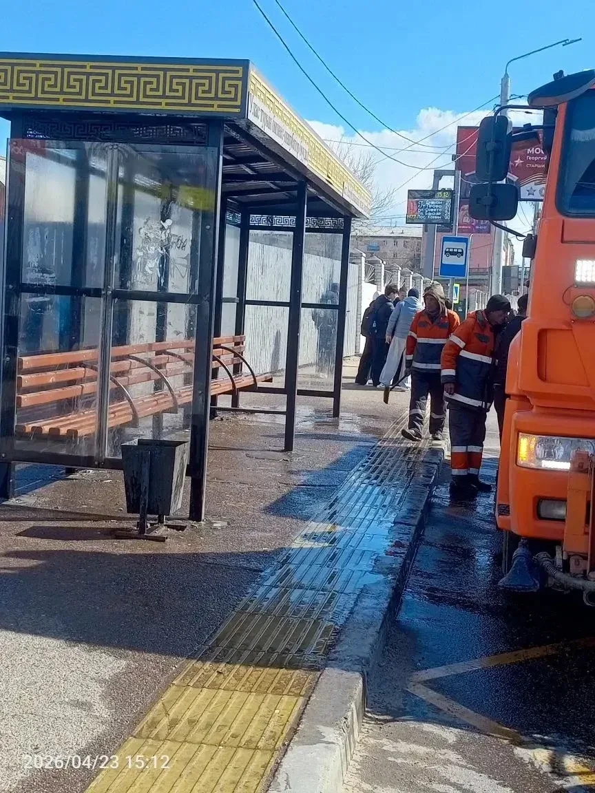 Генеральная уборка в городе идет полным ходом. Трамвайные и автобусные остановки «принимают» «горячий душ» после зимы. Уборщики Комбината по благоустройству также вручную вытирают лавочки, стены и крыши остановок, в также информационные щиты.