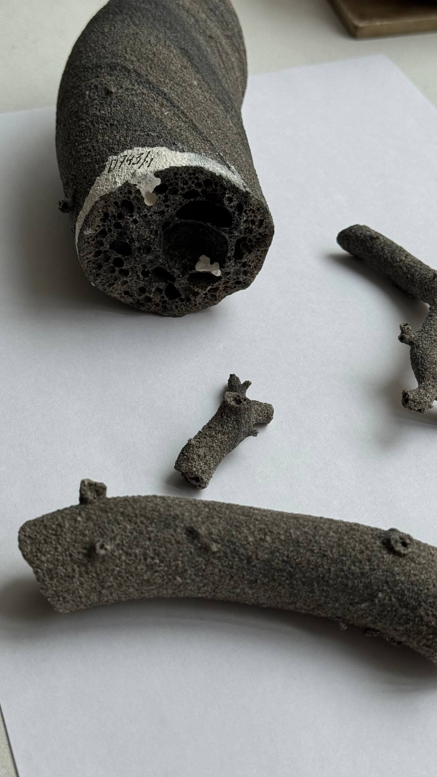 В основании этого фульгурита – кусок металлической проволоки, которая и стала той «антенной», которая притянула разряд с небес. От куска металла ток растекался в стороны, плавя песок и создавая причудливую форму, похожую на ветку или корни доисторического растения. Хранится уникальный экземпляр в Геологическом музее им. Вернадского в Москве.