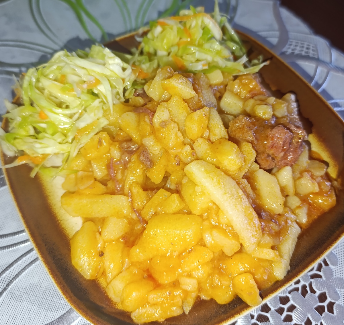 Картофель по-студенчески получается сытным и ароматным. Отлично дополнит его салат из свежей капусты и моркови, что сделает блюдо еще более аппетитным. Приятного аппетита!