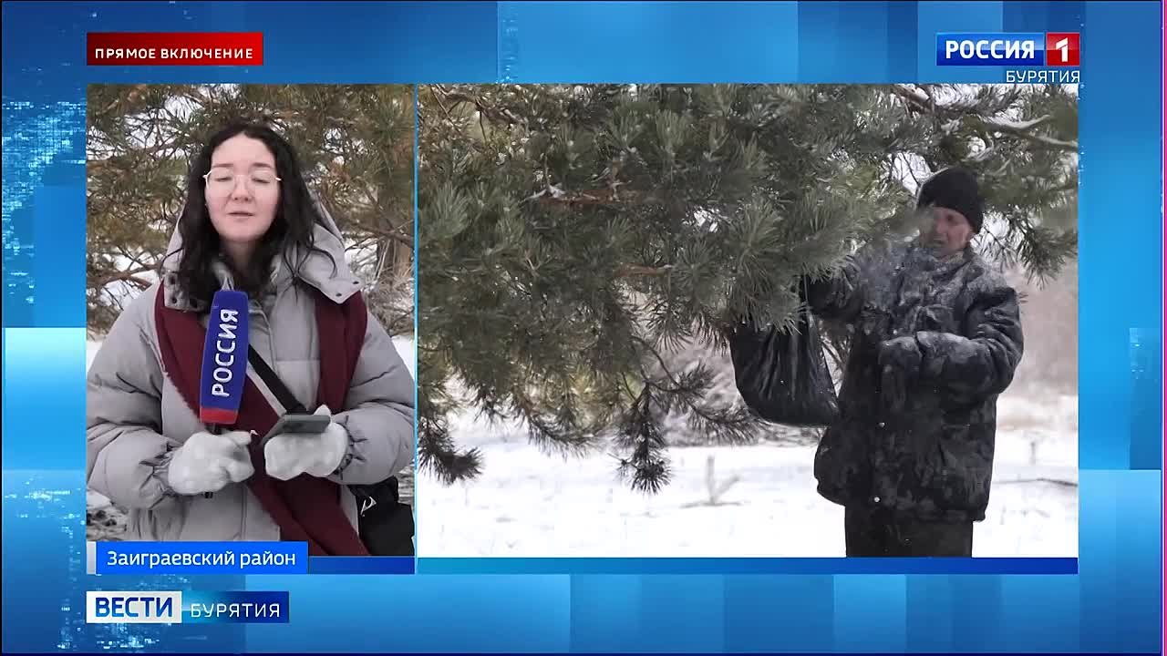 "Охота" за семенами хвойных проходит в холодное время года: с ноября по март.Сеянцы к этому времени уже созрели, но сама шишка ещё плотно закрыта. Сбор дикоросов проходит по всей республике. В Заиграевском районе сейчас работает наша съёмочная группа.