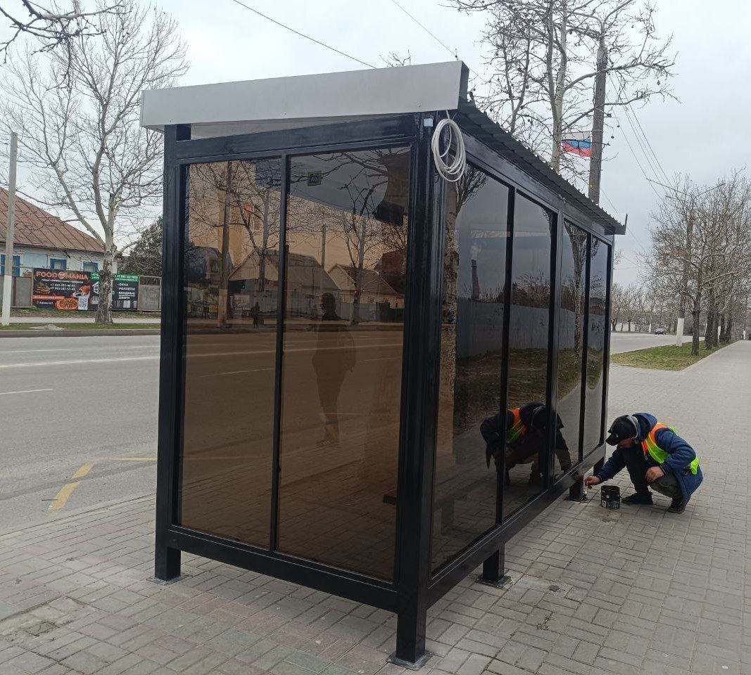 В Мелитополе Запорожской области продолжают менять остановки. На остановке «Пушкина» уже поставили новый современный павильон вместо старого.
