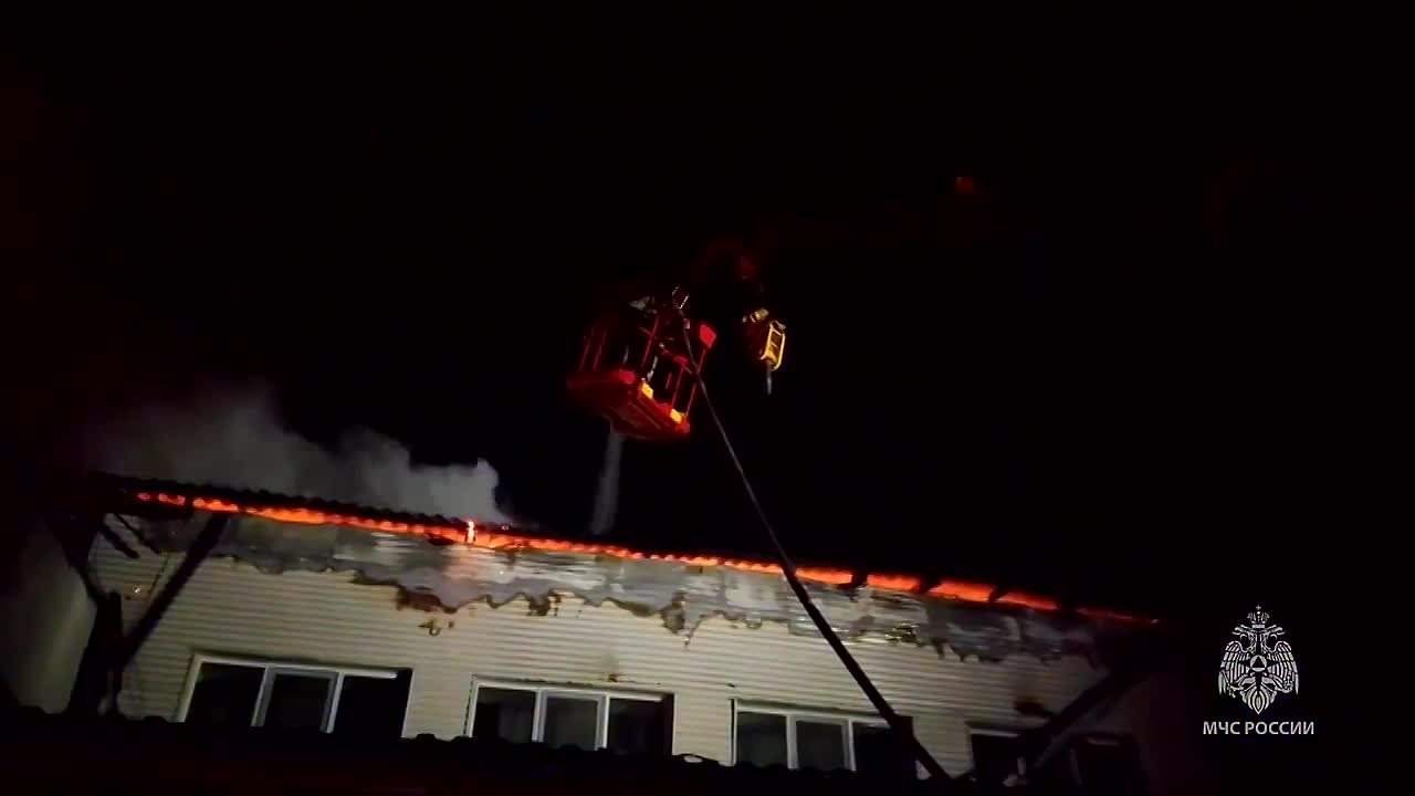 Склад в здании торгового центра на улице 70 лет Октября вспыхнул накануне ночью. Огонь перешел на кровлю здания.
