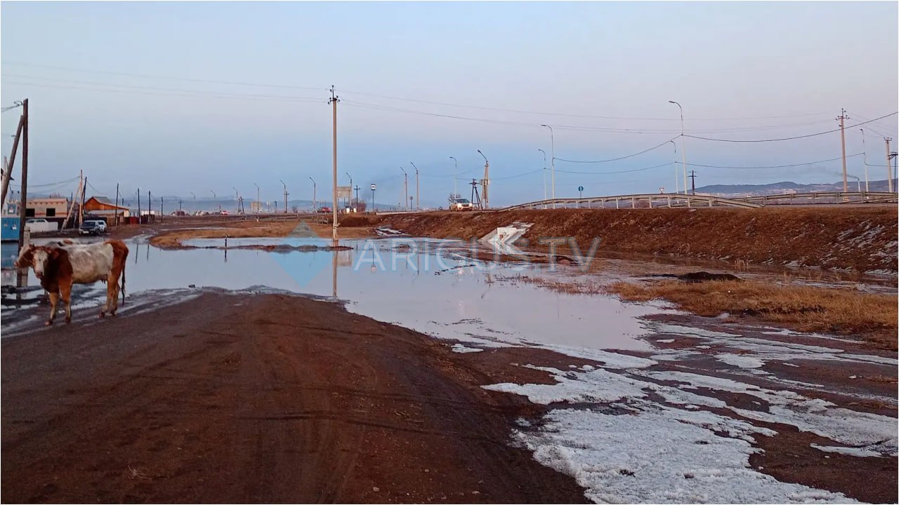 Растаявший снег затопил дорогу и двор жителям в пригороде Улан-Удэ
