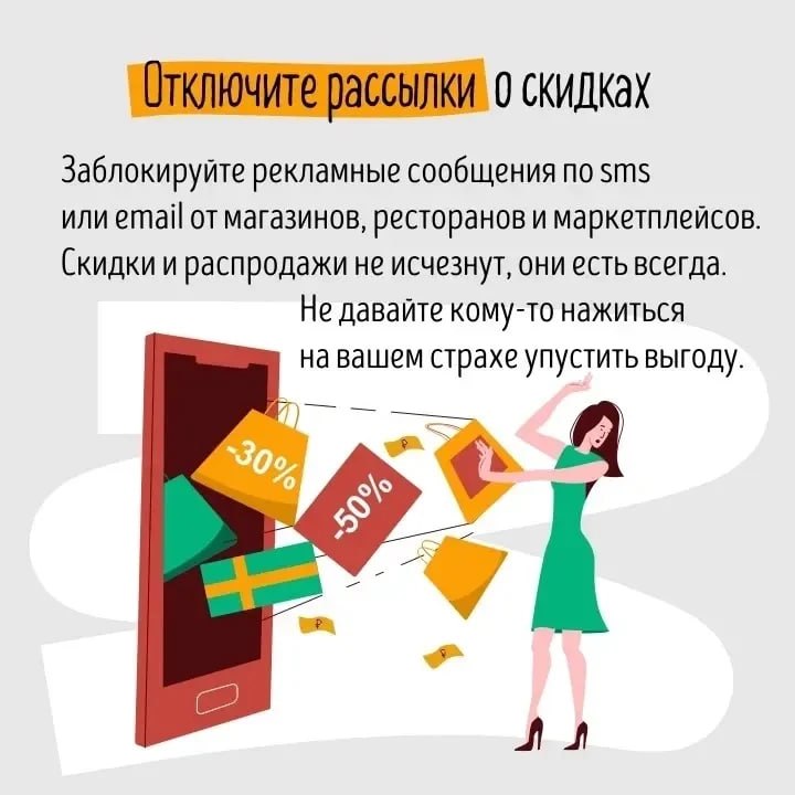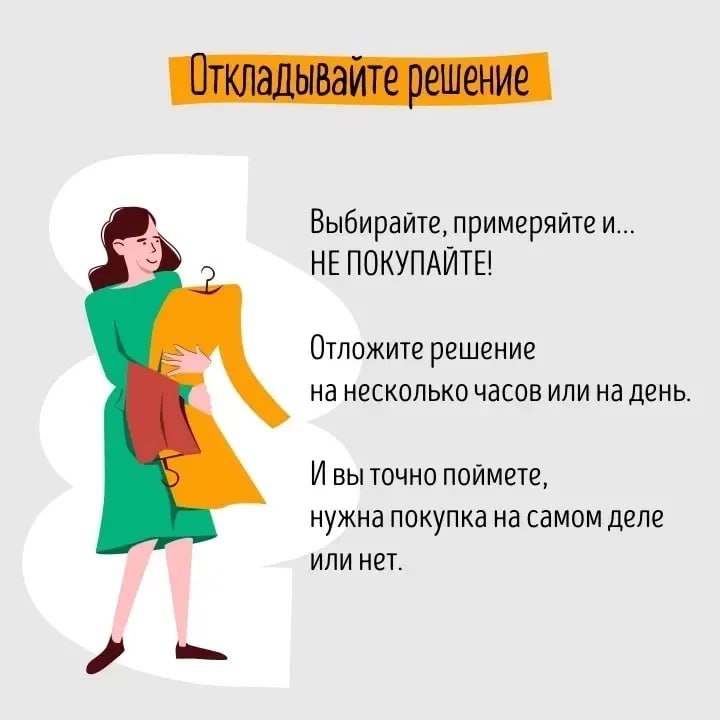 Главный враг разумного потребления – спонтанные покупки. Не принимайте решение импульсивно: если что-то понравилось прямо здесь и сейчас, или если привлекла цена со скидкой. На деле может оказаться, что вещь не так уж и была нужна.