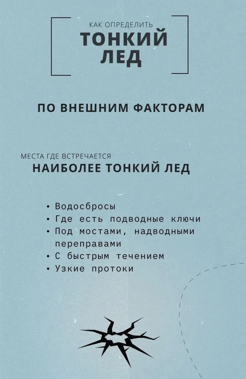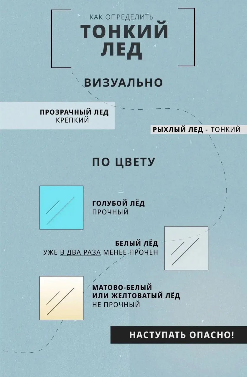 если лед начал трескаться или прогибаться, немедленно прекратите движение, развернитесь и аккуратно возвращайтесь скользящими шагами;