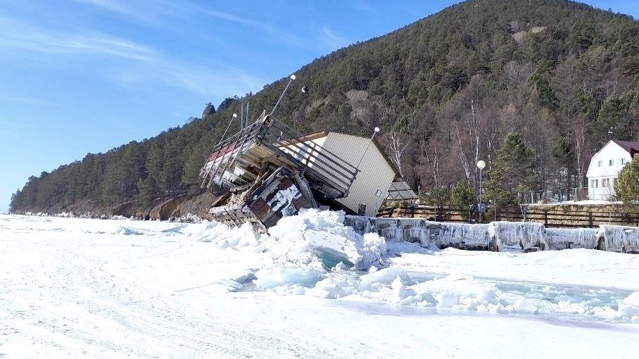 Причал полевого стационара Лимнологического института РАН в Больших Котах простоял у берега около 20 лет. Он сделан из сруба, заполненного тоннами камней, и на нем стоит полярный домик с научным оборудованием. На выходных лед вывернул основную опору из грунта, сообщил директор НИИ биологии озера Байкал Иркутского госуниверситета Максим Тимофеев.