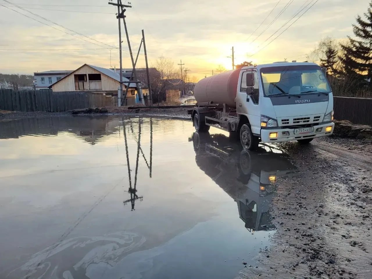 Вода постепенно уходит с частных дворов на ул. Телембинская в мкр. Зеленхоз. Здесь Комбинат по благоустройству со вчерашнего дня и всю ночь откачивали воду. Подтопление домов связано с обильным выпадением снега этой зимой и расположением участков в низменной части. На откачку воду была направлена свободная техника КБУ.