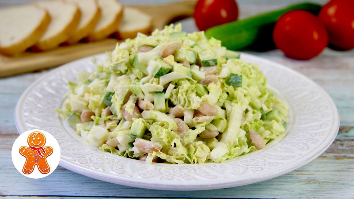Для начала, откройте банку фасоли и тщательно промойте ее под водой. Это поможет избавиться от излишков соли и консерванта. Затем, нарежьте вареные яйца, огурцы и капусту на небольшие кусочки. В глубокой миске аккуратно смешайте все подготовленные ингредиенты, добавьте майонез и приправьте салат по вкусу солью и перцем.