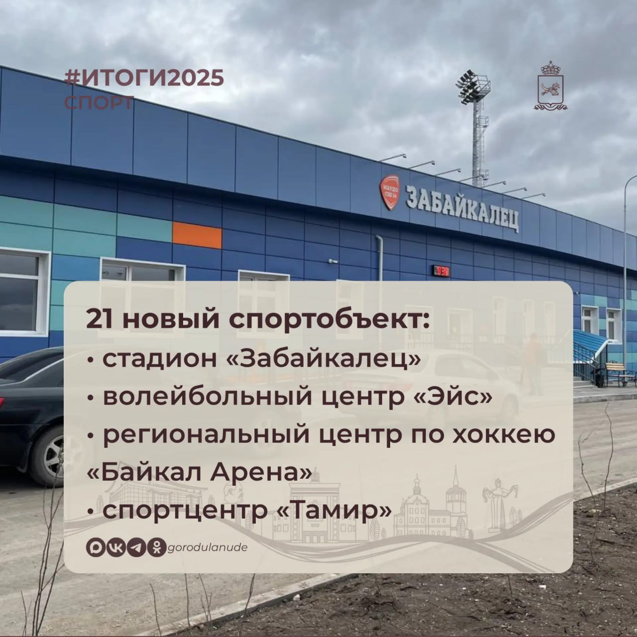 В прошлом в Улан-Удэ после реконструкции и строительства открыт 21 спортивный объект, сообщил мэр Улан-Удэ Игорь Шутенков. Самые крупные: стадион «Забайкалец», волейбольный центр Эйс, региональный центр по хоккею «Байкал Арена» и спортивный центр «Тамир».