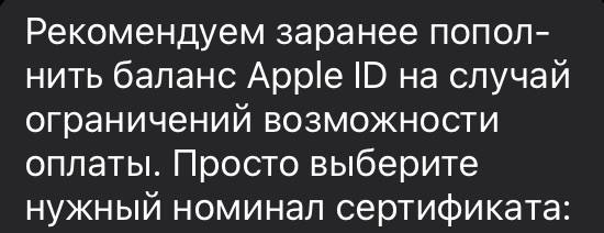 Операторы сотовой связи начали рассылать уведомление о пополнении баланса Apple ID.
