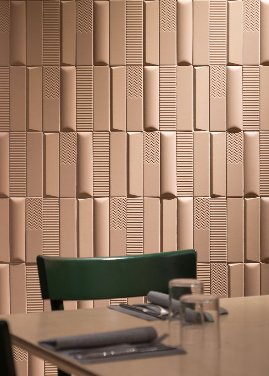 В интерьере ресторана в Катании, созданном дизайнером Costa Architetti, плитка 41zero42 из коллекции Biscuit преобразила привычное пространство. Эта коллекция удивляет разнообразием: плоские, выпуклые, 3D и рельефные элементы в ней создают ощущение глубины и объема. В результате строгая геометрия превращается в выразительный современный дизайн, который привлекает внимание и создает динамичную атмосферу.