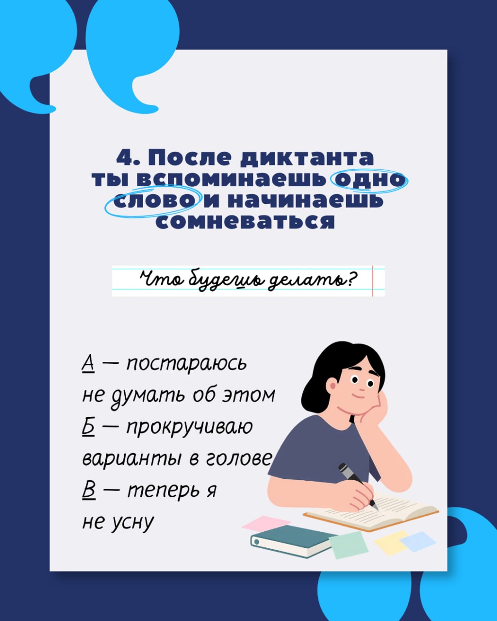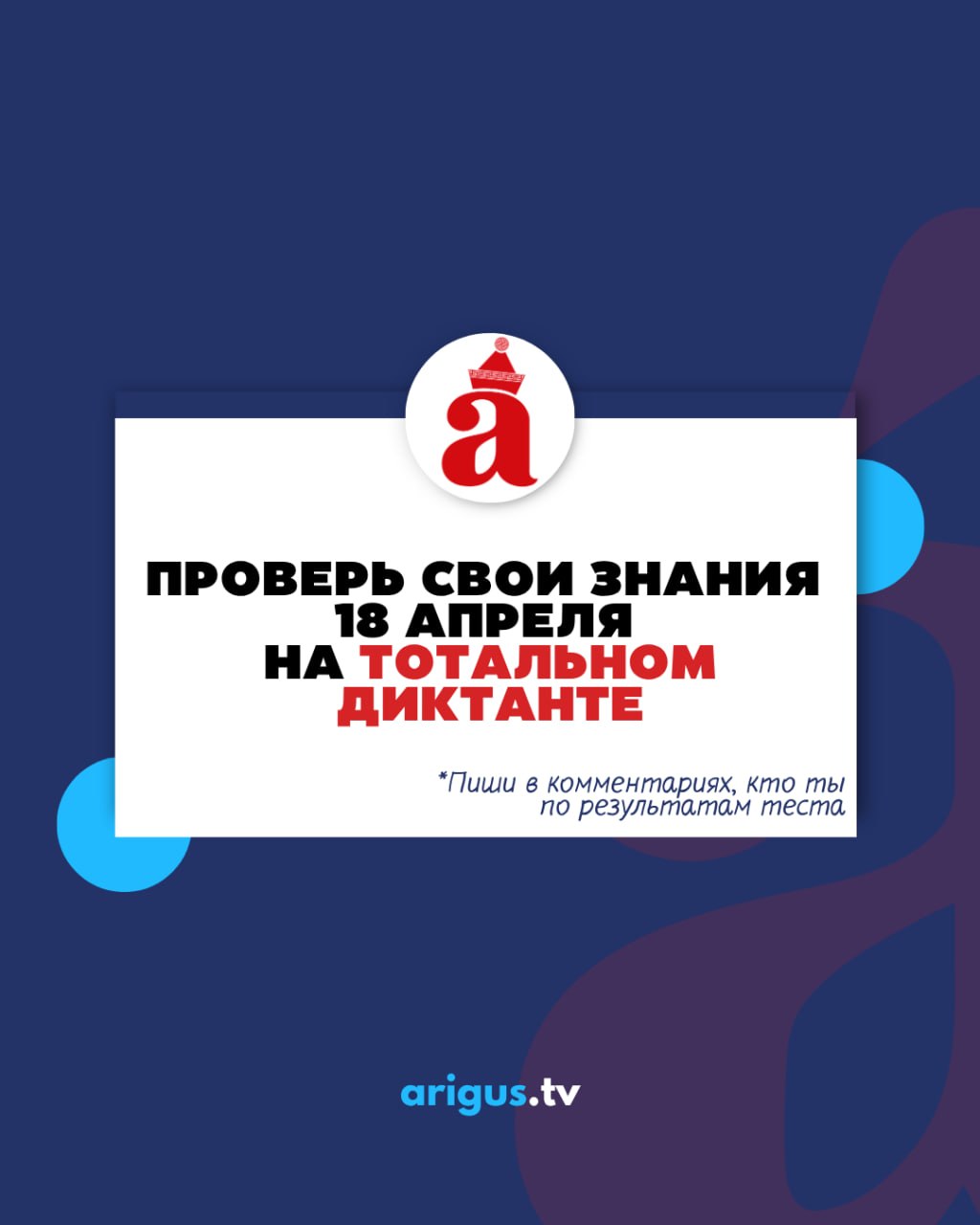 Скорее проходите тест и пишите в комментариях свой результат! А мы напоминаем, что проверить свою грамотность в деле можно уже 18 апреля на «Тотальном диктанте»
