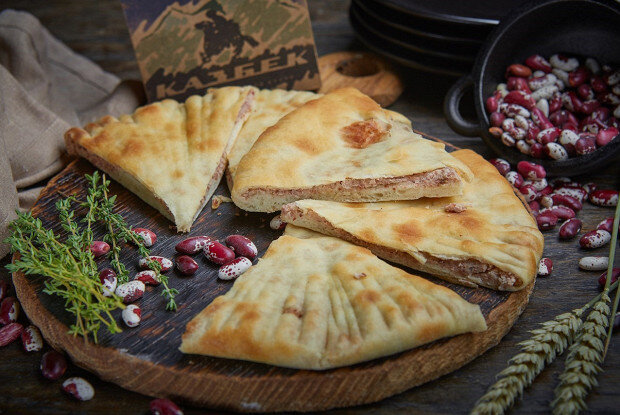 Каждую порцию теста раскатать в виде блина. На центр каждого блинчика положить начинку, затем накрыть вторым блинчиком и тщательно запечатать края. Раскатать слегка и выпекать в разогретой печи при температуре 260 градусов на протяжении 10 минут до золотистого цвета.