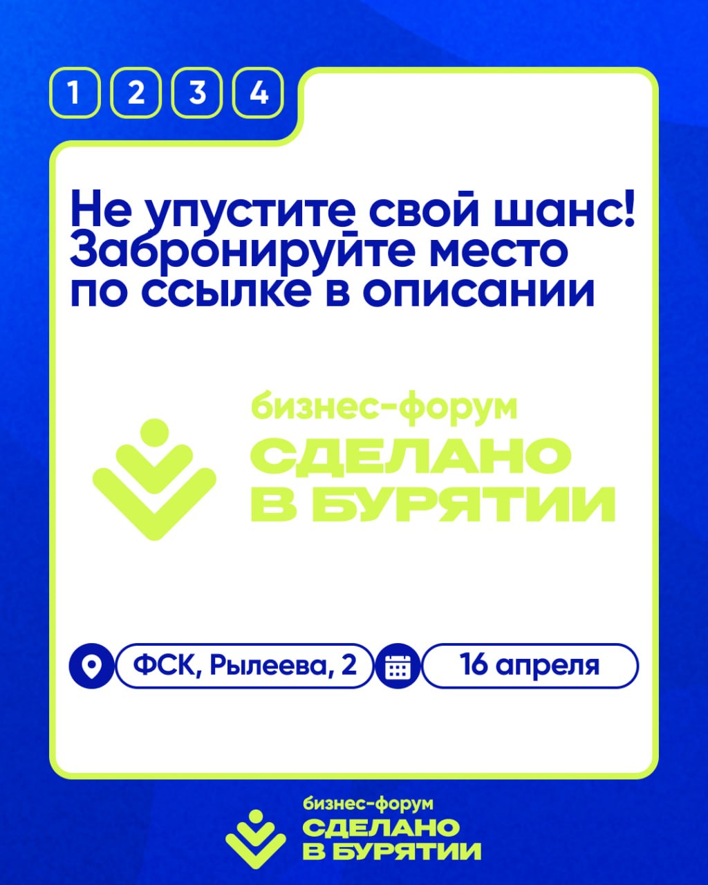 Мероприятие реализуется по национальному проекту «Эффективная и конкурентная экономика». Организаторы: Центр предпринимательства «Мой бизнес» при поддержке Правительства Республики Бурятия и Министерства промышленности, торговли и инвестиций Республики Бурятия.