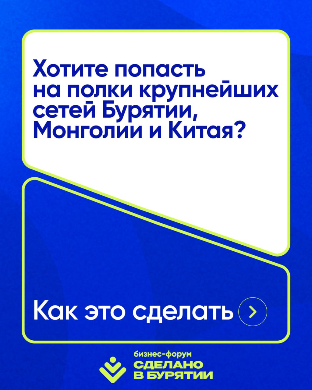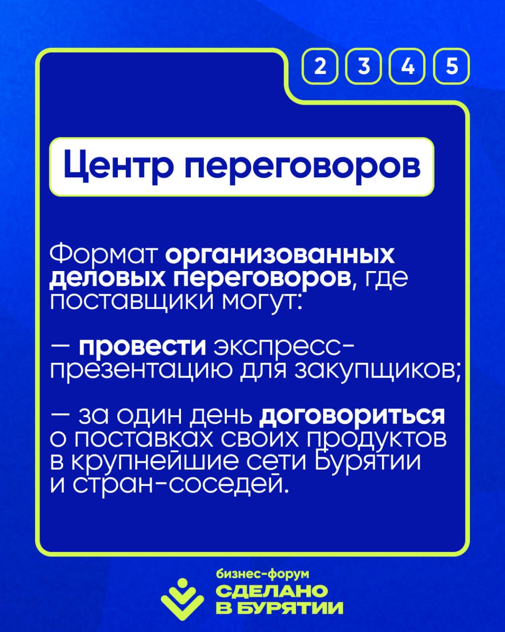 Приходите в Центр переговоров на форуме «Сделано в Бурятии». Встретьтесь лично с теми, кто закупает товары для магазинов, и договоритесь о поставках.
