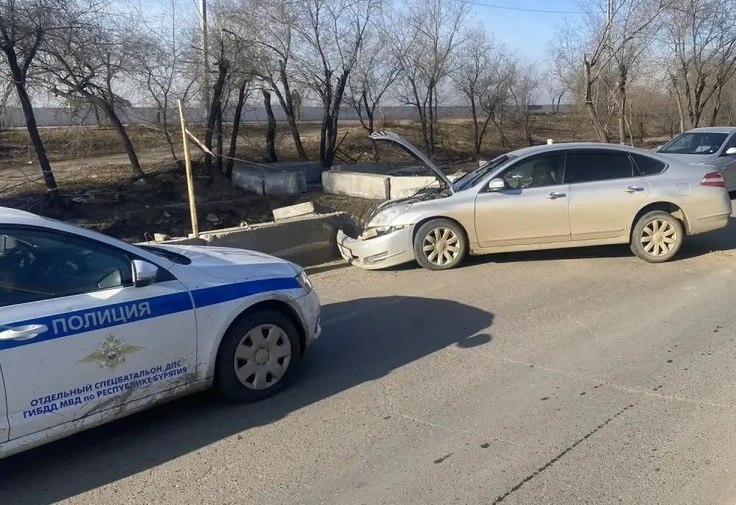 Утром в Улан-Удэ 44-летняя водитель «Ниссана Теана» на ул. Ленина врезалась в бетонный блок. Тот находился на проезжей части для проведения дорожных работ.