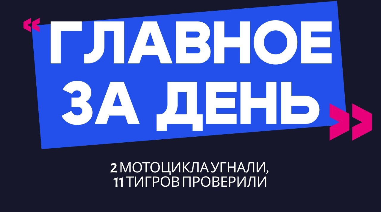 Главное за день: 2 мотоцикла угнали, 11 тигров проверили