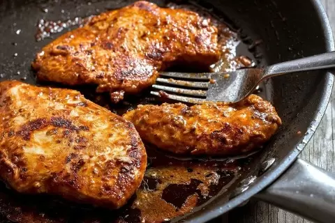 После завершения маринования, процесс приготовления сводится к жарке курицы. Вы можете добавить специи по вкусу, но это не обязательно — рассол уже содержит все необходимые ароматы.
