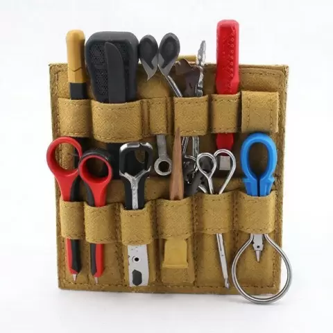 Важно помнить о безопасности — особенно с тяжелыми или острыми предметами, которые могут со временем выпадать из-за изменения температуры или влажности. Рекомендуется использовать защитные чехлы для ножей или направлять их лезвием вверх, крепко фиксируя на ленте. Страховка в виде нейлонового шнура также может предотвратить падение в случае неожиданного соскальзывания инструмента.