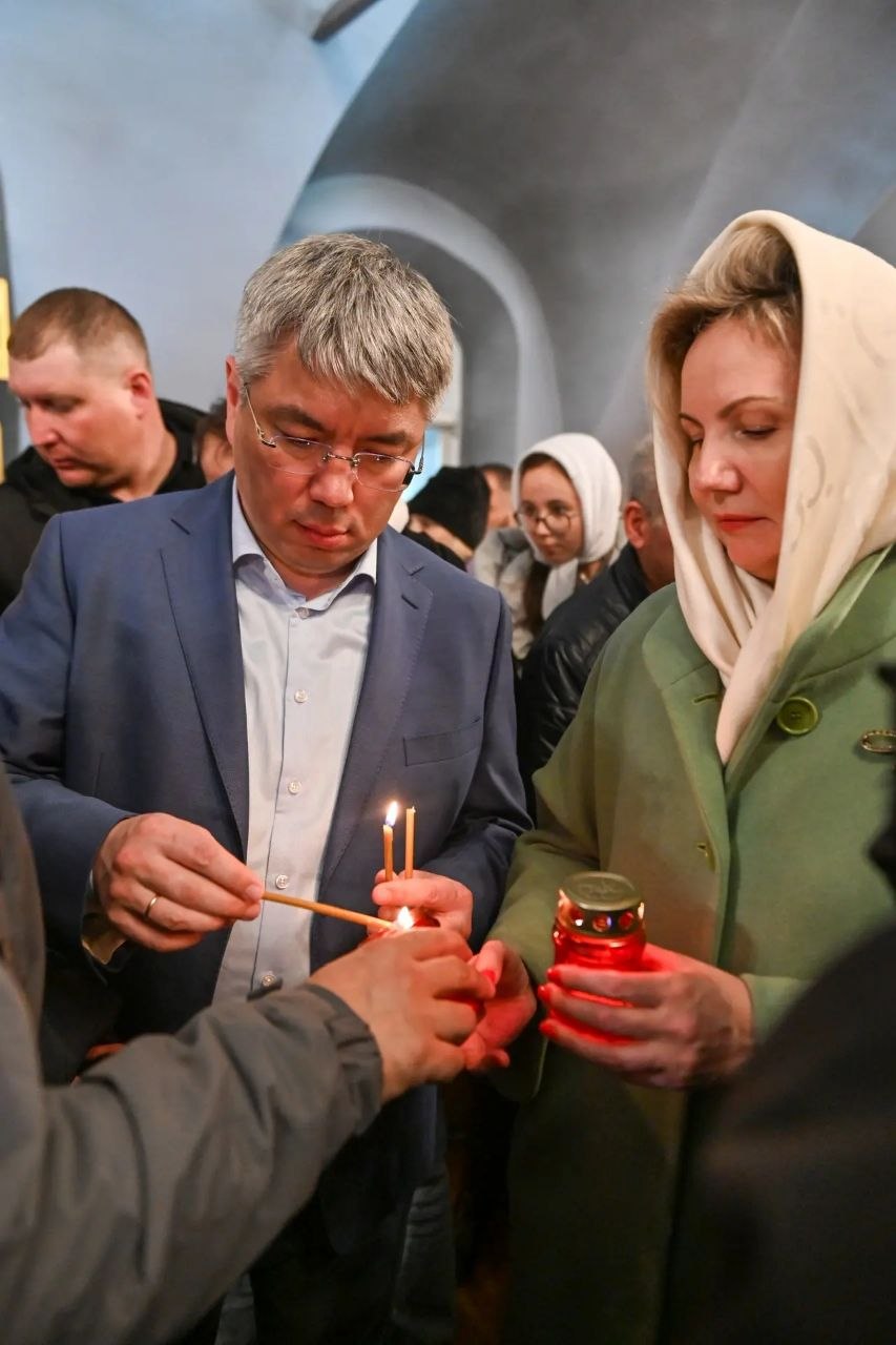 С супругой были на пасхальном богослужении в Свято-Одигитриевском соборе.
