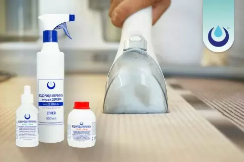 - Смешать перекись с водой в пропорции 1:2 и аккуратно нанести на загрязненный участок.