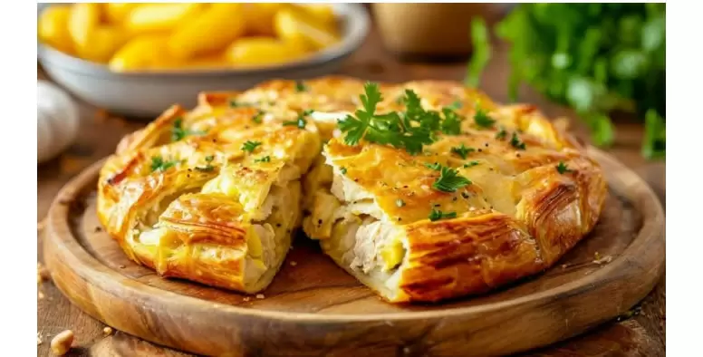 Курник с курицей и картошкой на сметанном тесте