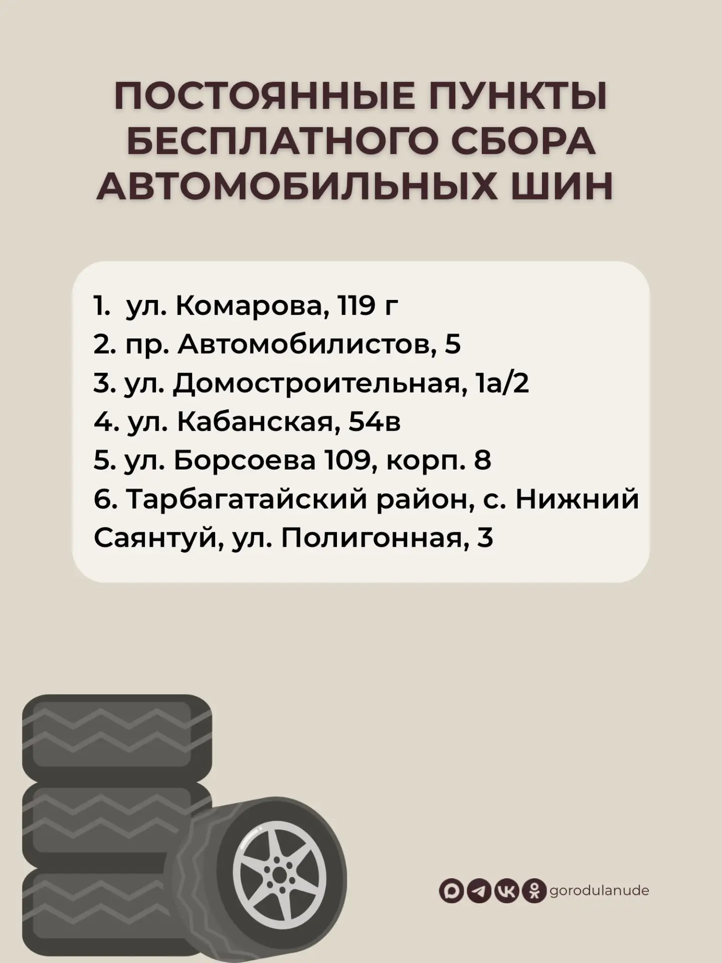 Весенний месячник чистоты – отличный повод избавиться от старых шин. Сдайте ненужную «резину» на переработку. Из нее сделают безопасное покрытие для новых площадок.
