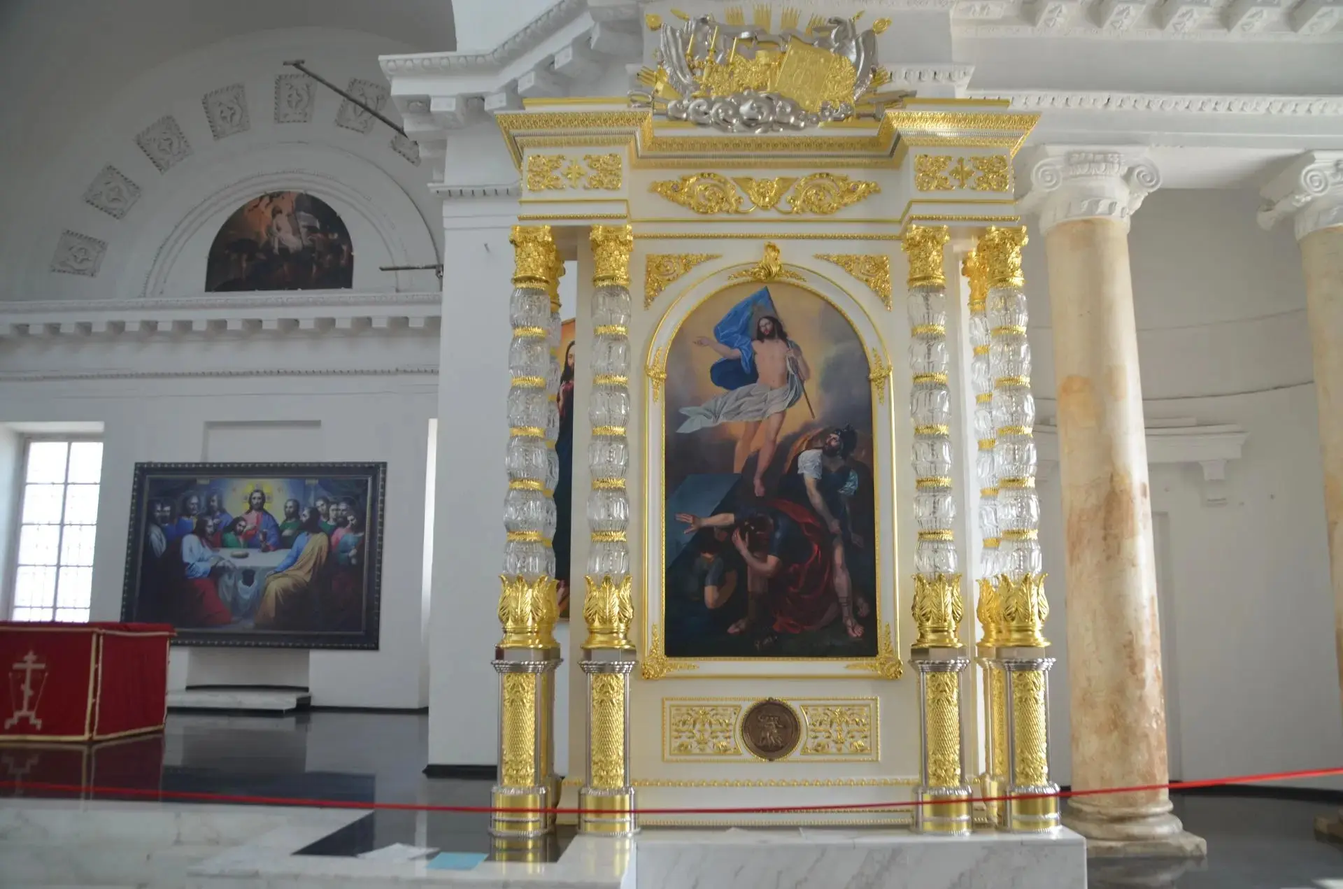 Сейчас идёт его восстановление на средства благотворителей и грантов. Люди с благоговением поклонялись Иисусу Христу и ставили свечи возле икон. Рядом с балюстрадой была организована ярмарка, где ТОС «Дворик детства», Воскресенский приход представили традиционные пасхальные блюда и крашеные яйца, поставили самовары. Также здесь можно было приобрести вязаные изделия и украшения.
