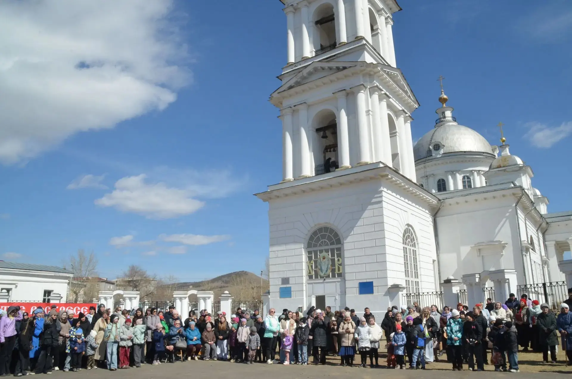 У главного храма Воскресения Христова в посёлке Слобода в Кяхте в день Светлой Пасхи 12 апреля 2026 г. прошёл новый необычный праздник «Светлая Пасха». Мероприятие было организовано на обустроенной в 2025 г. площади возле церкви Воскресения Христова. Жители города, артисты и гости собрались, чтобы отметить праздник в честь Господа.