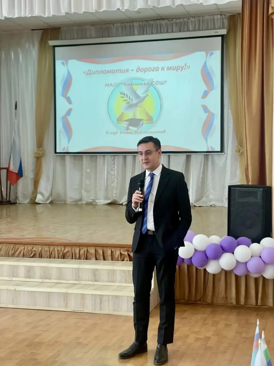 М.Мелех также посетил школу с.Кабанск, где рассказал школьникам - членам Клуба юных дипломатов с.Кабанска и с.Посольское об основах дипломатии, особенностях работы в системе МИД России. Спецпредставитель поделился интересными фактами из своей практики и опыте работы за рубежом. Ребята с интересом слушали и активно задавали вопросы.