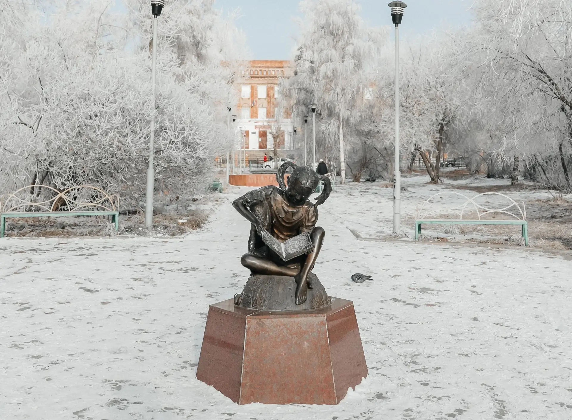 Бронзовая фигура установлена в сквере «Школьный» на улице Октябрьской в 2015 году. Памятник изображает девочку, читающую книгу, и собаку рядом с ней. При этом на странице книги можно увидеть строки стихотворения Саржаны Дугаровой «Мой город». Автор композиции — Юрий Эрдынеев.