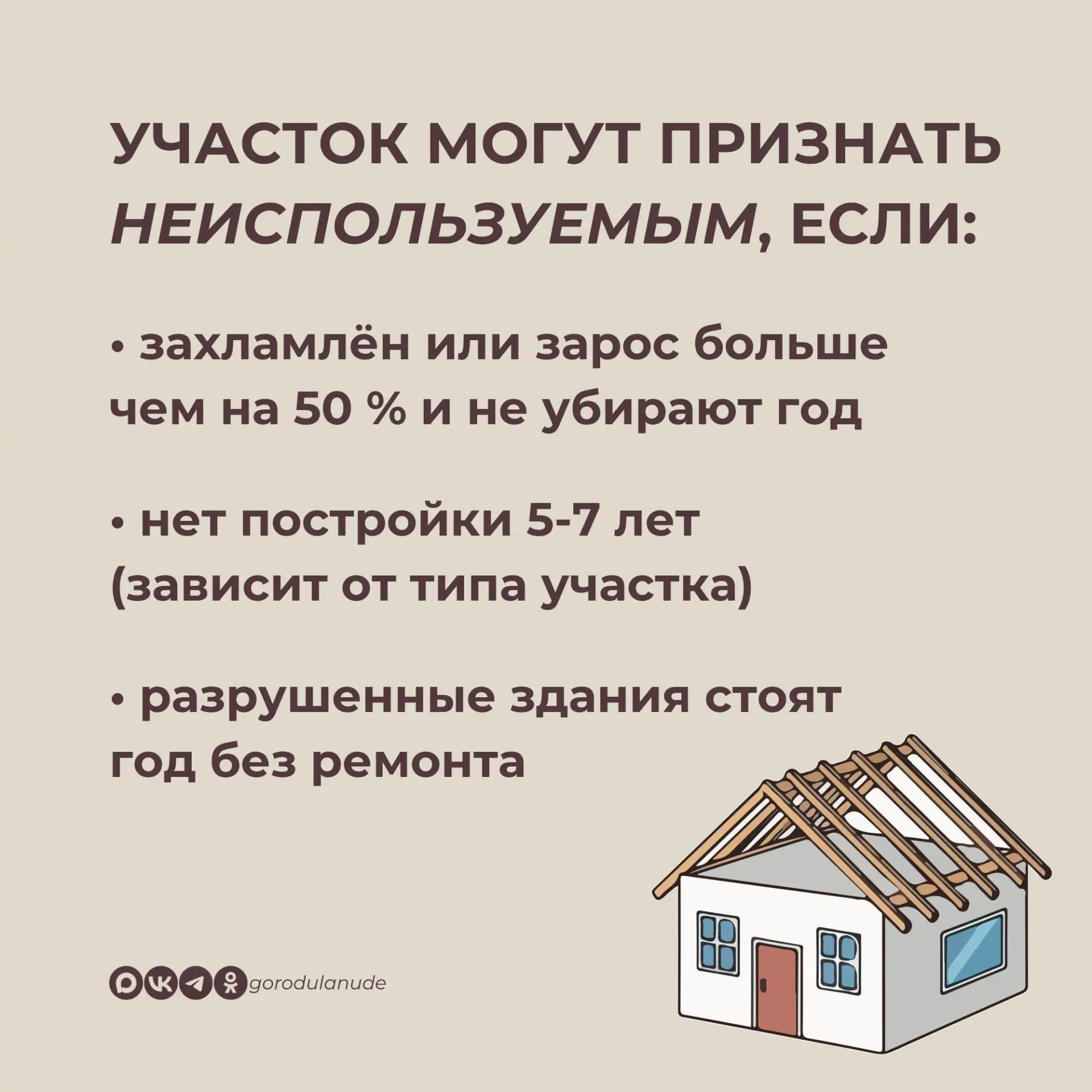 7 лет не используется предназначенный для индивидуального жилищного строительства или если дом не зарегистрирован;