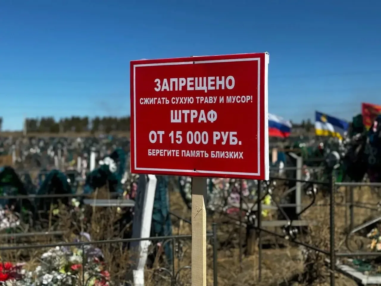 Просим соблюдать правила пожарной безопасности: не сжигать мусор и сухую траву, не оставлять после себя отходы. В случае возгорания необходимо немедленно обратиться к администрации кладбища по телефону: 8 (3012) 210-210.