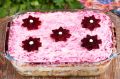 4. Селедка под рубиновой шубой. Этот вариант включает в себя желатин, который придаёт блюду невероятную текстуру и оригинальный вид. Ингредиенты расположены в кольце, а после охлаждения образуют аккуратный желеобразный слой.