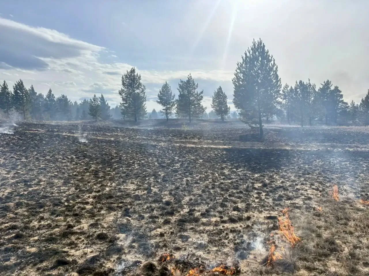 - Тушение осложнялось сильной ветровой нагрузкой. Вчера вечером усиливали группировку, дополнительных сил и техники не требуется. Сейчас ветер стих, активное действие огня прекращено, лесники занимаются дотушиванием отдельных очагов горения, - говорится в сообщении.