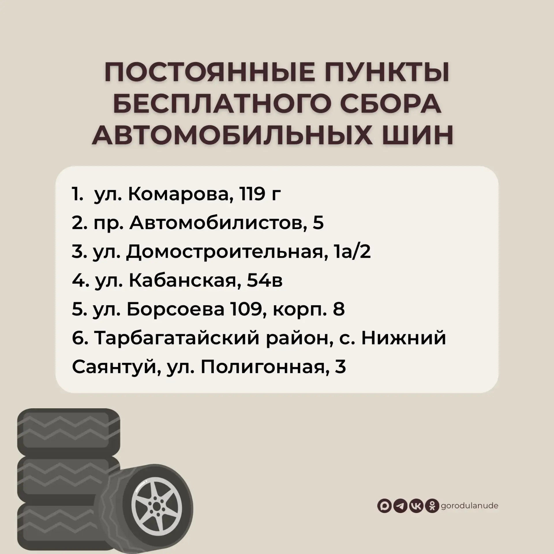 Весенний месячник чистоты – отличный повод избавиться от старых шин. Сдайте ненужную «резину» на переработку. Из нее сделают безопасное покрытие для новых площадок.