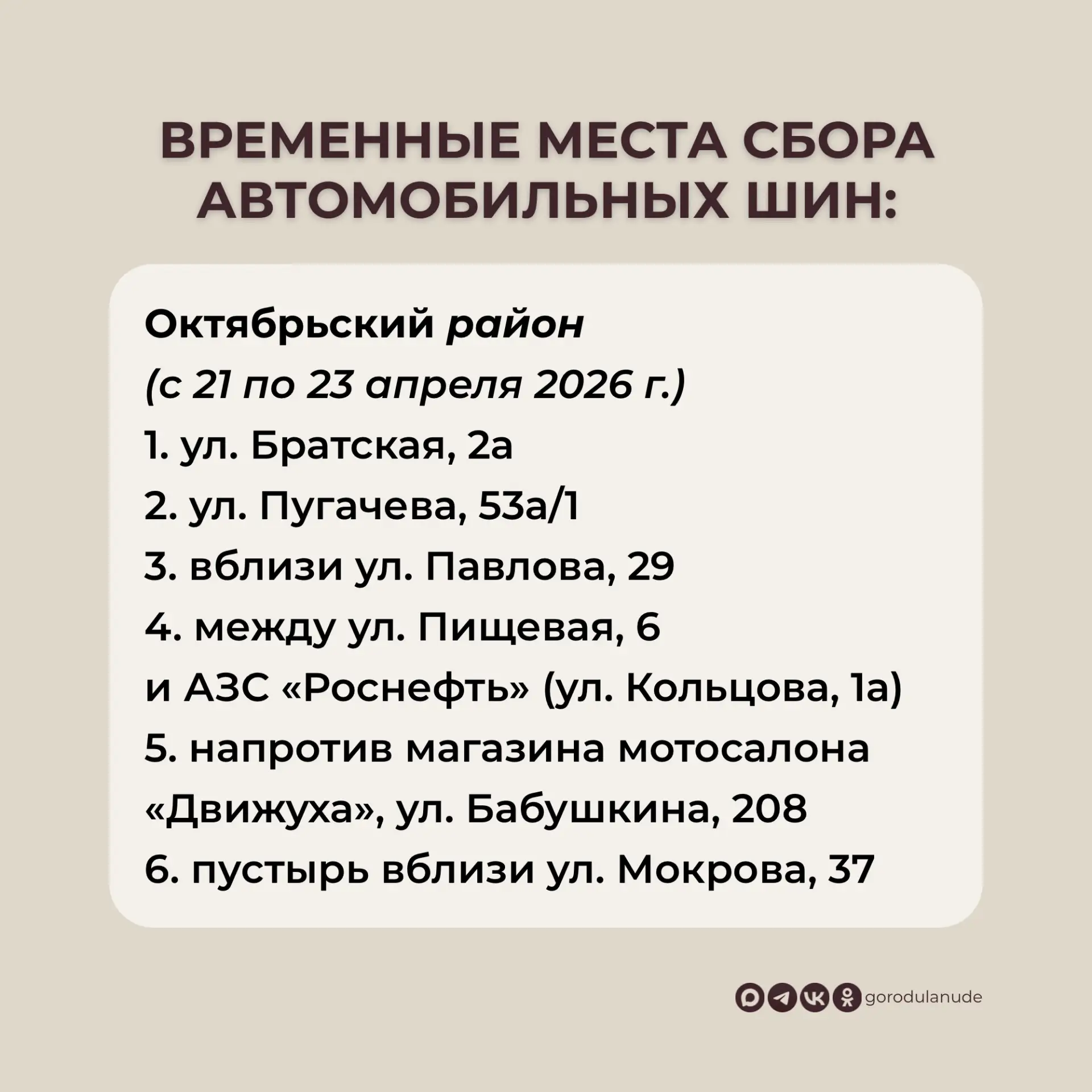 Адреса пунктов сбора смотрите в карточках