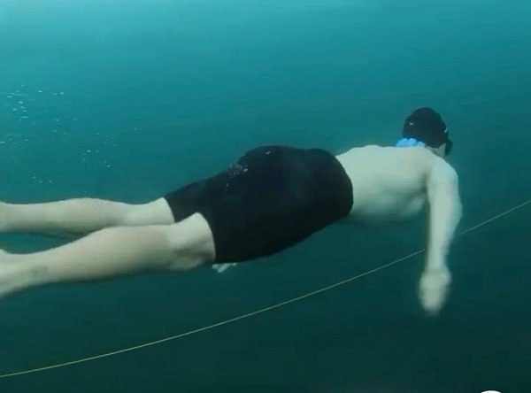 Заплыв прошёл в экстремальных условиях: при 20 градусах мороза и ветре, а гидрокостюма и кислорода у блогера не было.