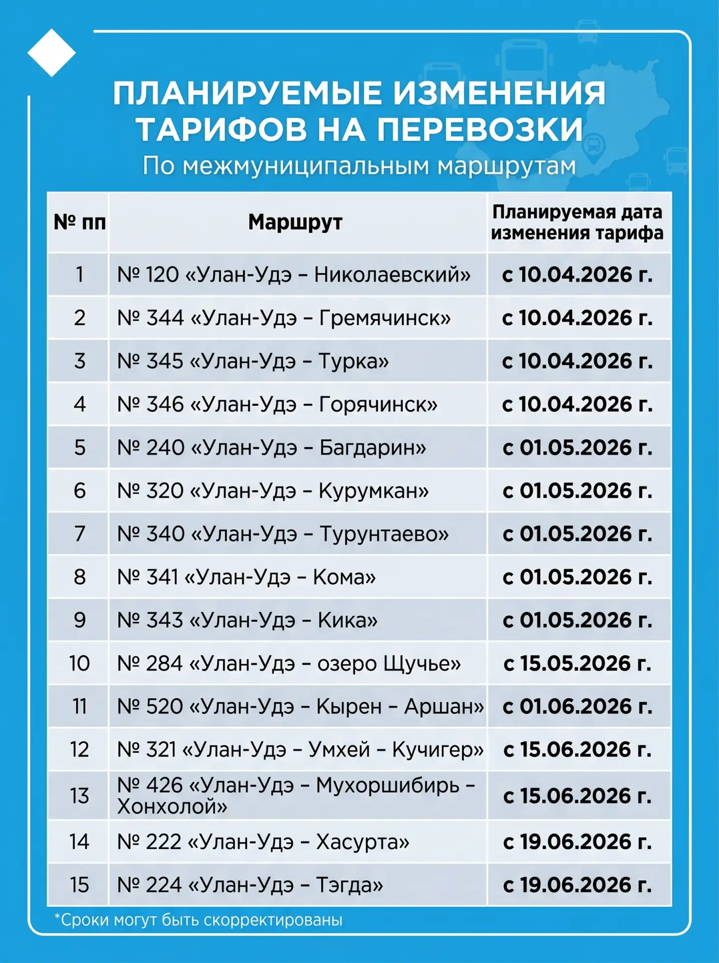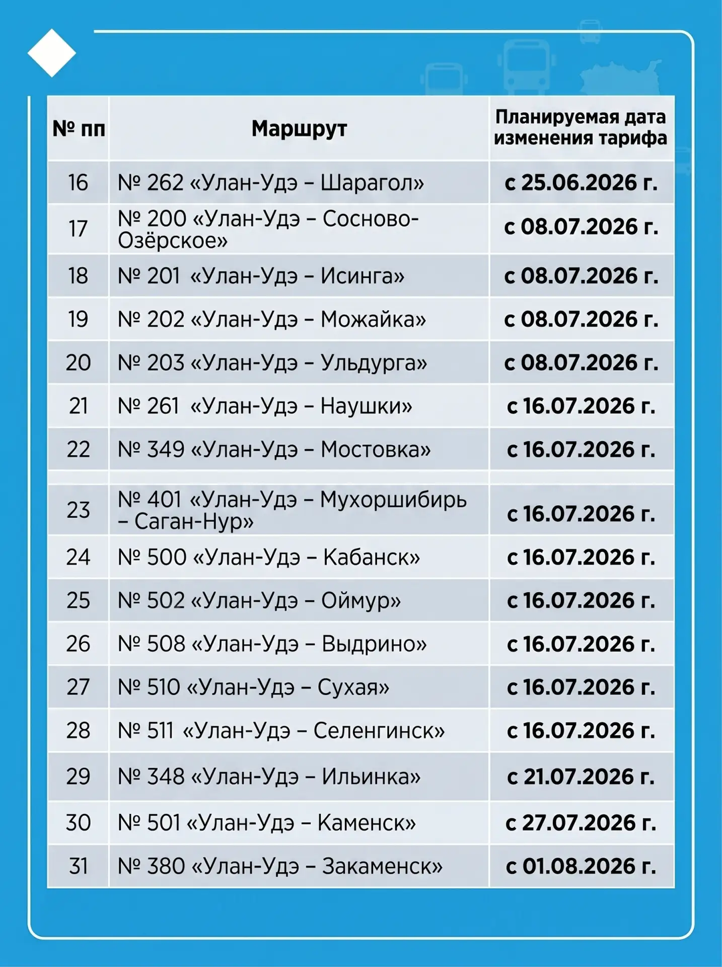 Межмуниципальные маршруты подорожают в Бурятии