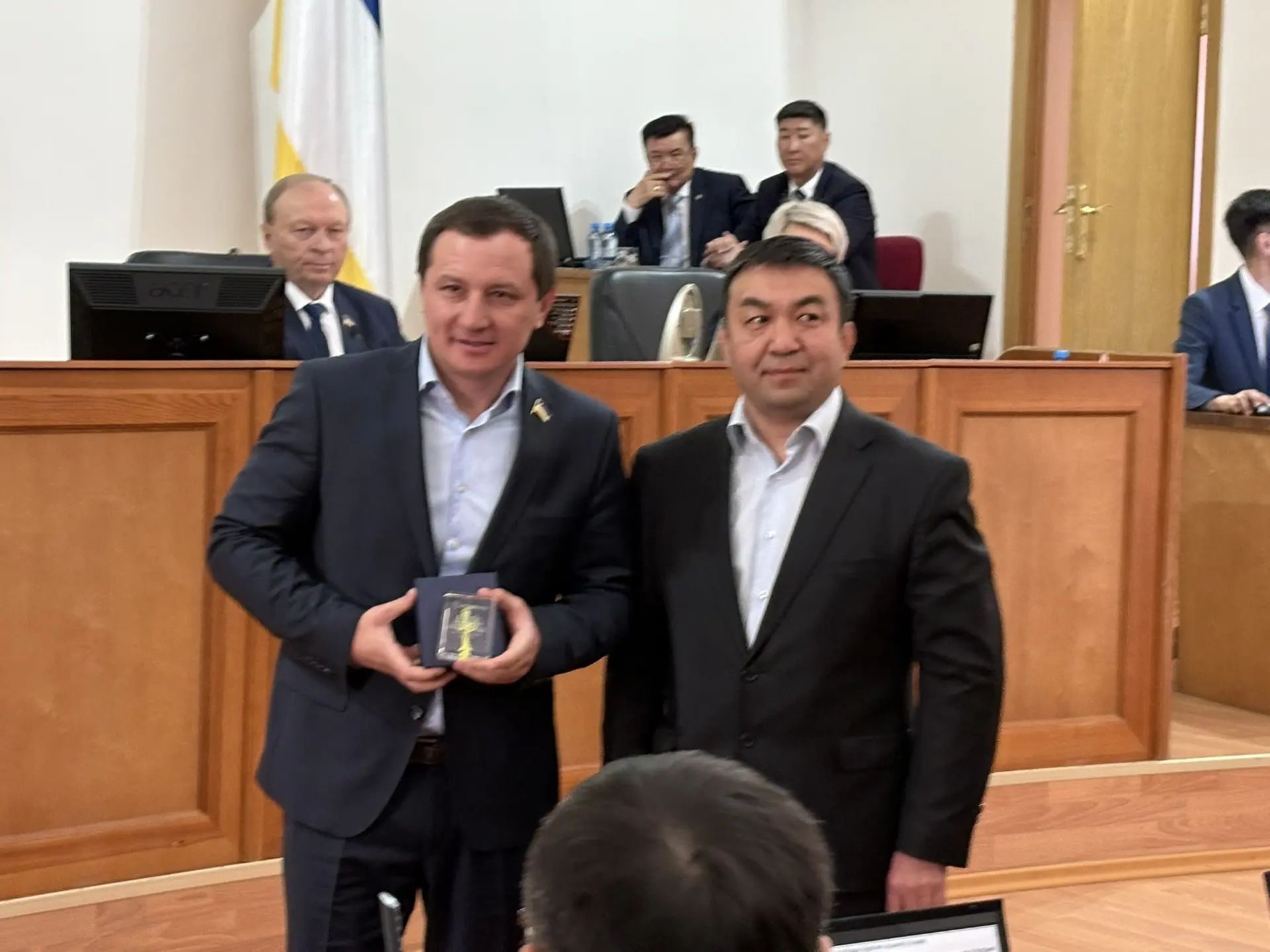 Депутат Евгений Кучумов получил награду от заместителя министра спорта республики Эрдэма Биликтуева как лауреат конкурса республиканских премий «Золотой олимп - 2025» в номинации «Меценат года» за вклад в развитие физической культуры и спорта в регионе.