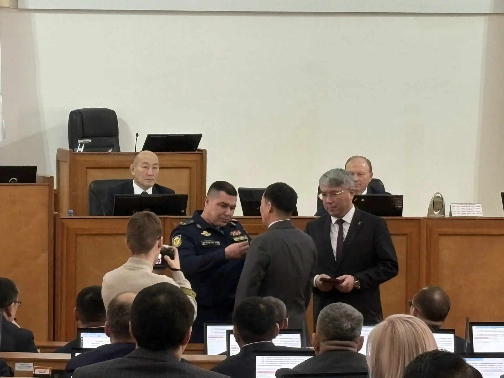 От Министерства обороны Российской Федерации медалью «За помощь и милосердие» награжден депутат Народного Хурала Иннокентий Вахрамеев. Ведомственную награду вручил начальник штаба 11-ой отдельной гвардейской десантно-штурмовой бригады орденов Суворова, Жукова и Кутузова, гвардии подполковник Динар Шарафутдинов.