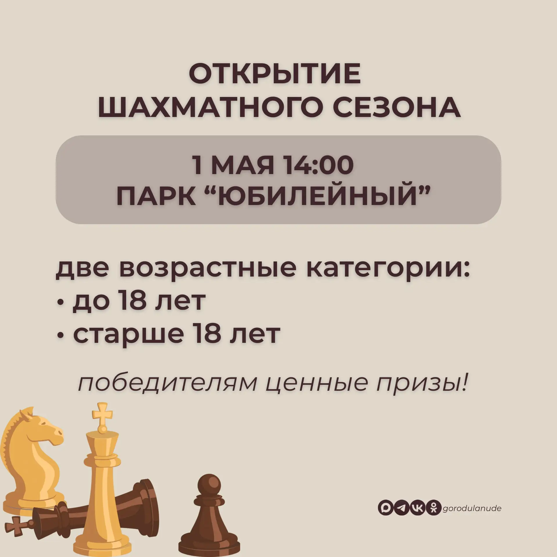 1 мая в 14:00 в Парке «Юбилейный» состоится открытие шахматного сезона 2026.
